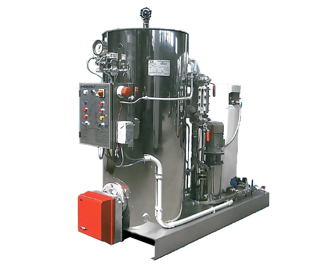 Caldeira industrial automática vertical em inox com produção de 45 a 1000kg/h de vapor conforme modelo (Toda em inox: apropriada para indústria alimentar, hospitalar, farmacéutica, etc).