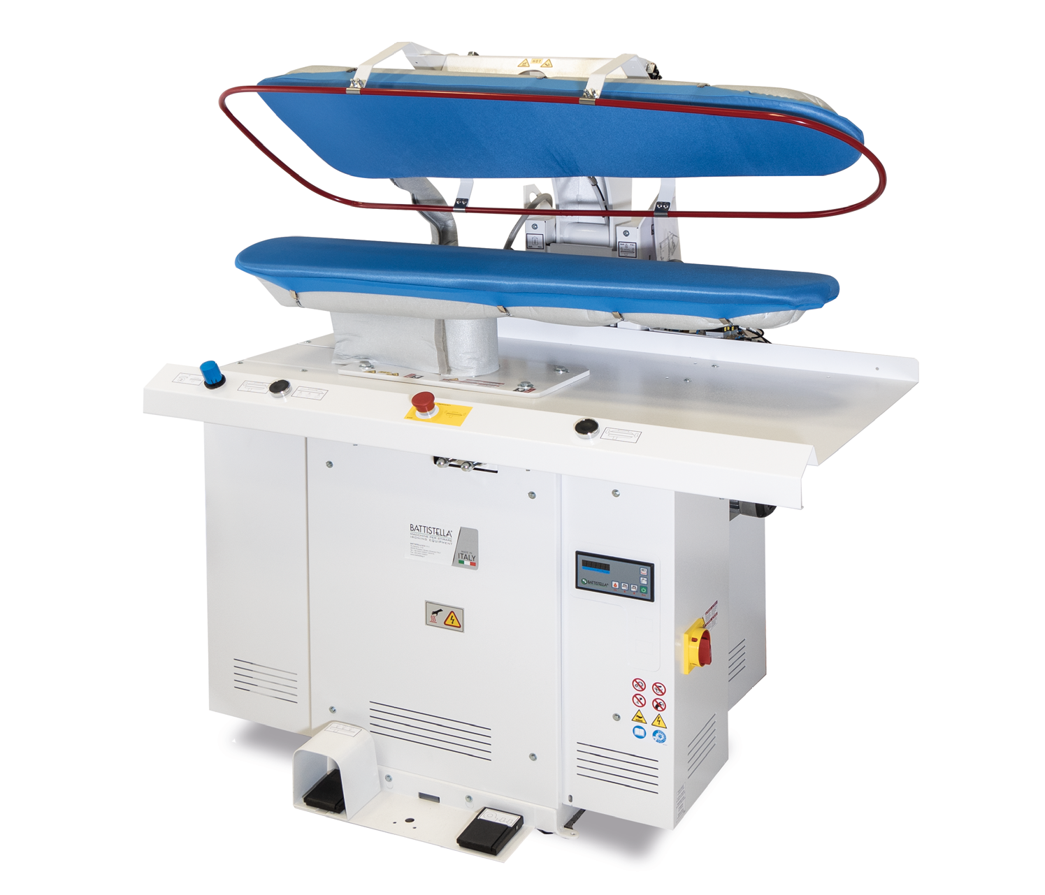 Prensa de passar pneumática (disponível nos modelos: Universal, Colarinhos/Punhos, Calças, Cós e Calças Compridas).