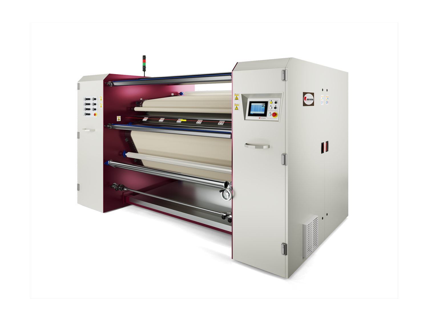 Calandra para sublimação em contínuo com cilindro de 2000mm de largura e 800mm de diâmetro