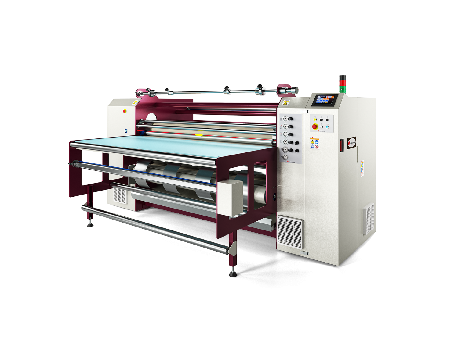 Calandra para sublimação em contínuo e peça a peça com cilindro de 1800mm de largura e 350mm de diâmetro