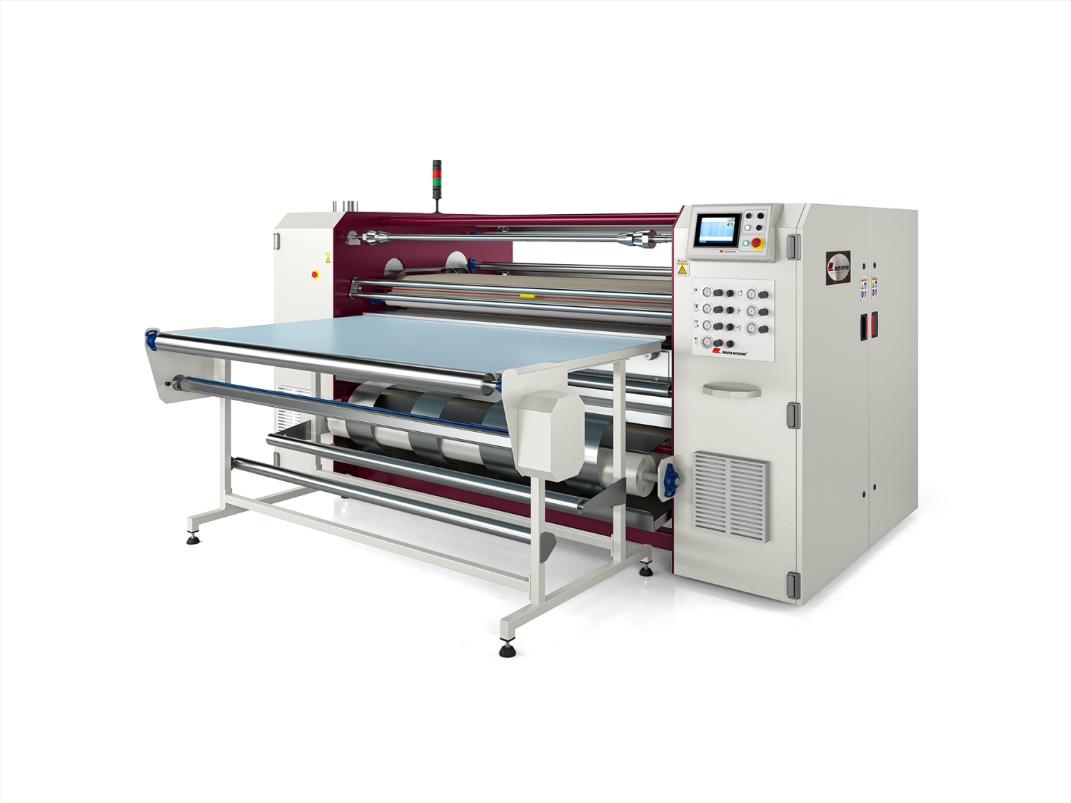 Calandra para sublimação em contínuo e peça a peça com cilindro de 2000mm de largura e 500mm de diâmetro