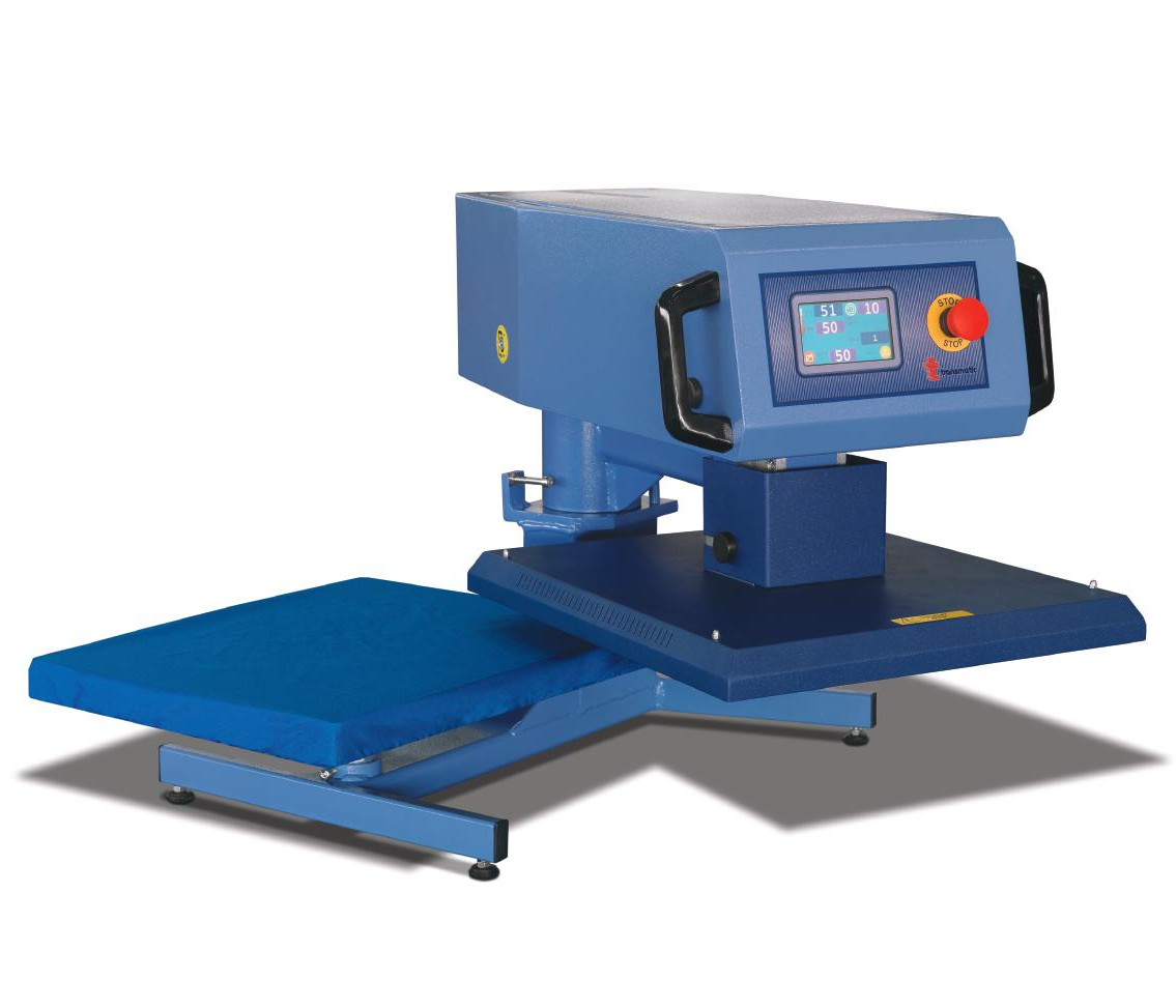 Prensa térmica semi-automática com 1 prato de 50x40cm com abertura lateral. Pressão automática.