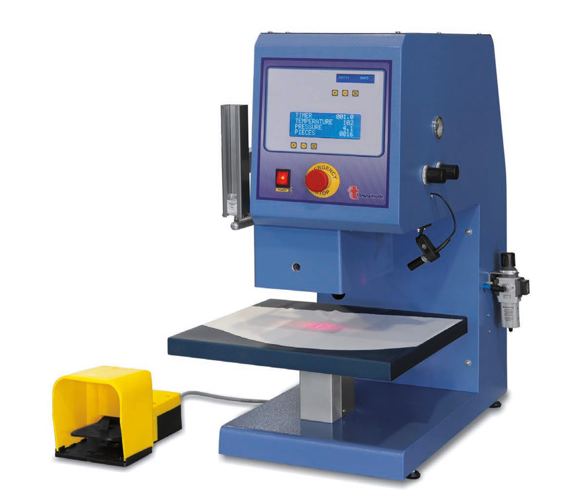 Prensa térmica pneumática automática com 1 prato especialmente concebida para etiquetas.