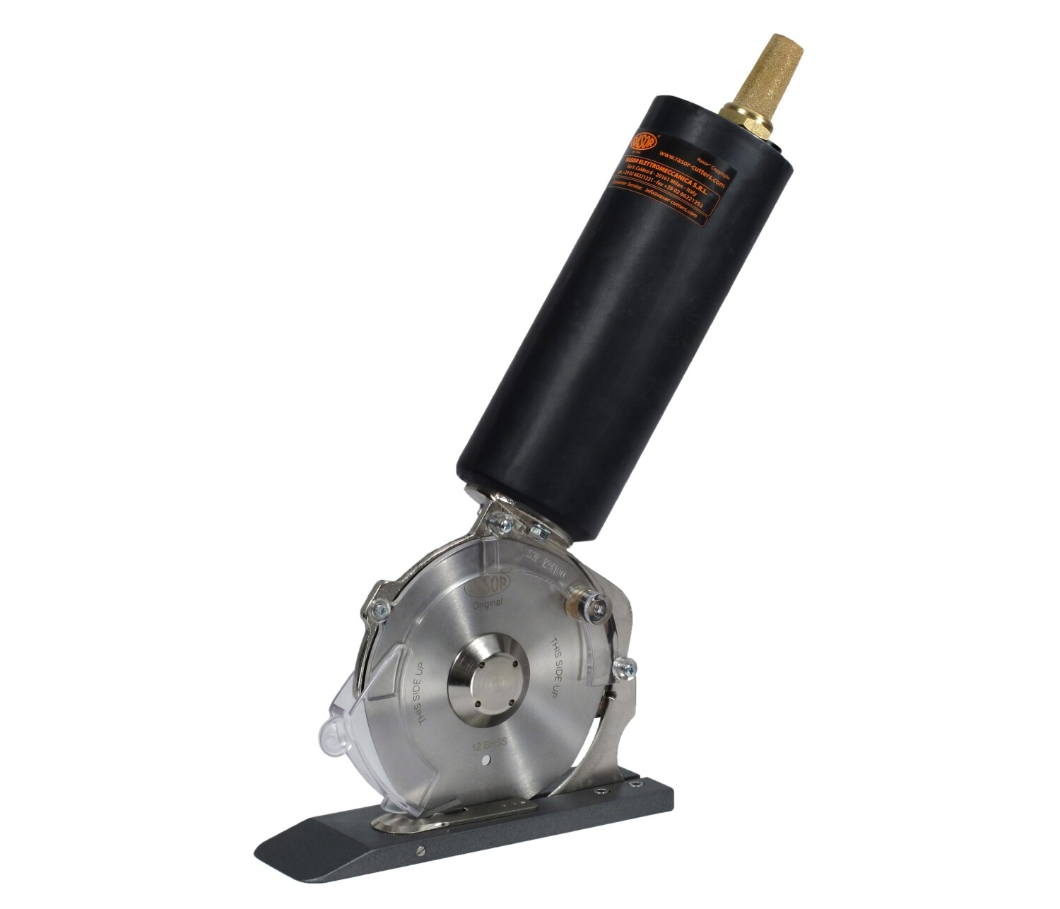 Unidade de corte pneumática 800W com lâmina Ø120mm c/ 8 lados, 700 rpm, altura de corte até 500mm.