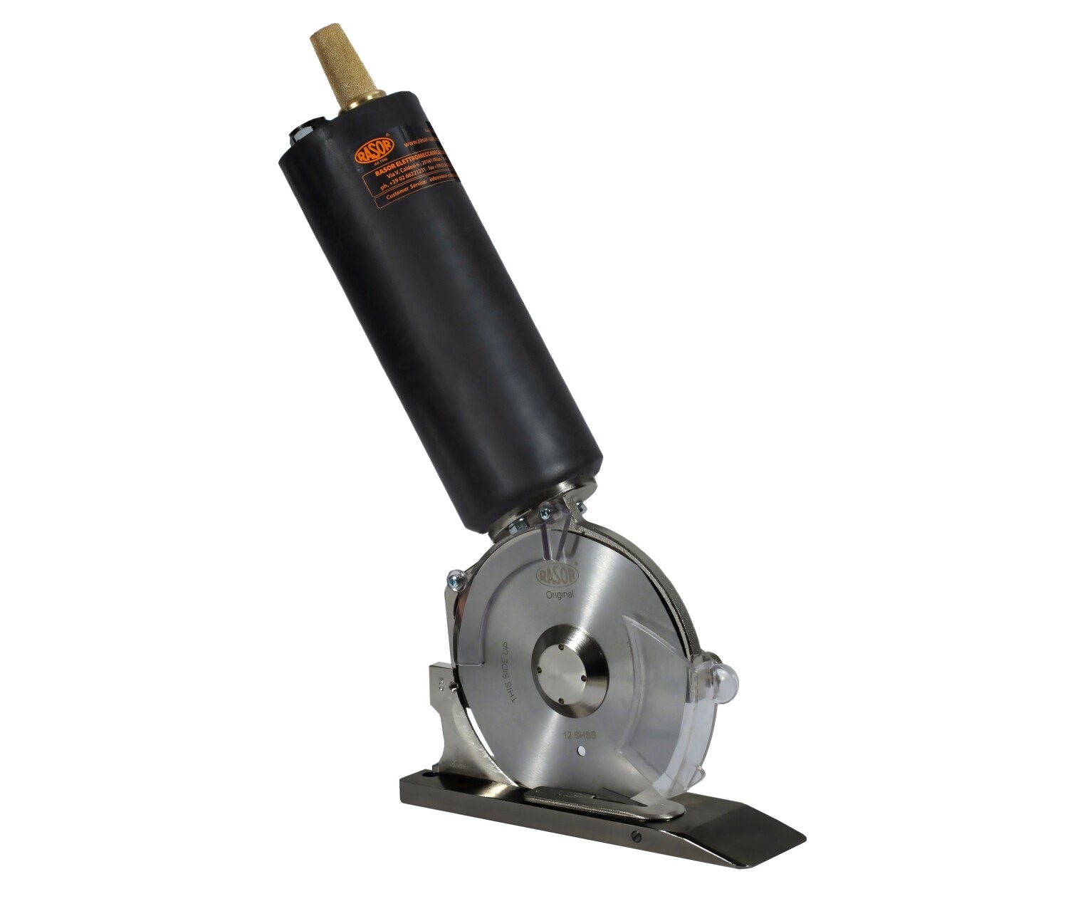 Unidade de corte pneumática 800W com lâmina Ø120mm c/ 8 lados (esquerda), 700 rpm, altura de corte até 50mm.