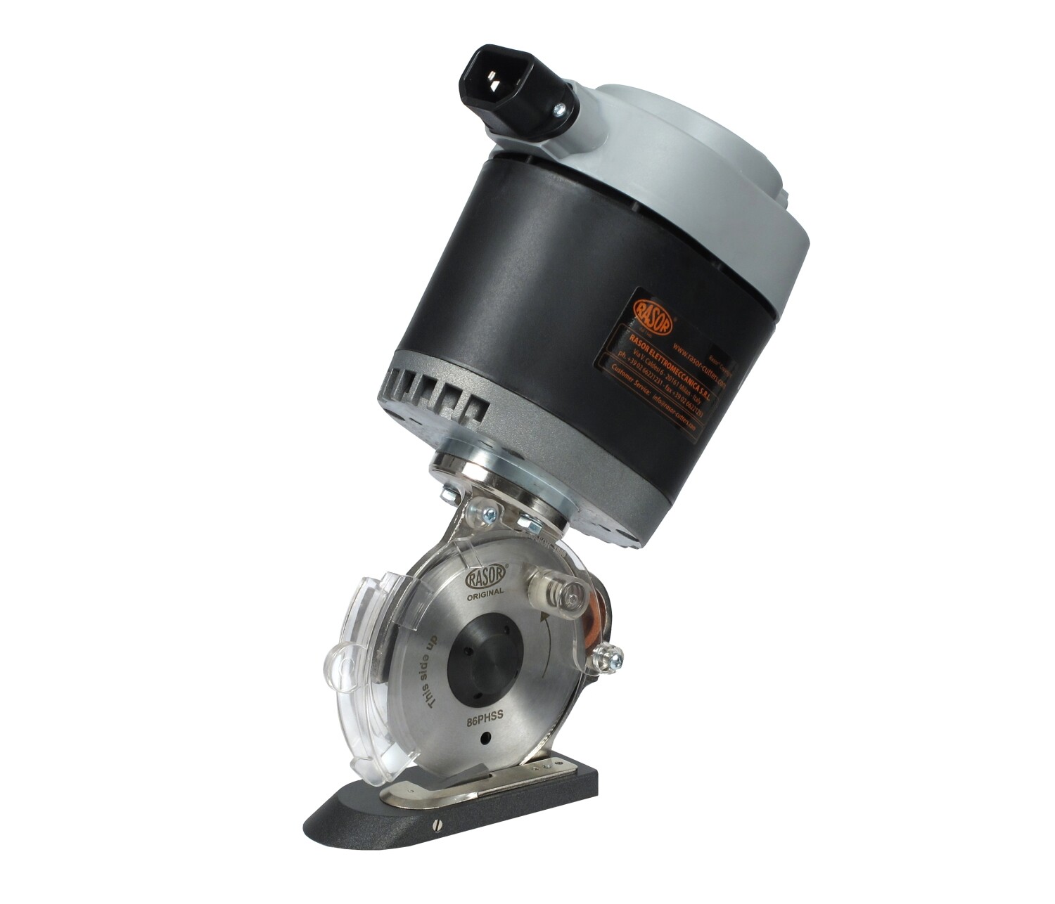 Unidade de corte eléctrica monofásica 90W com lâmina Ø86mm c/ 5 lados, 850 rpm, altura de corte até 25mm.