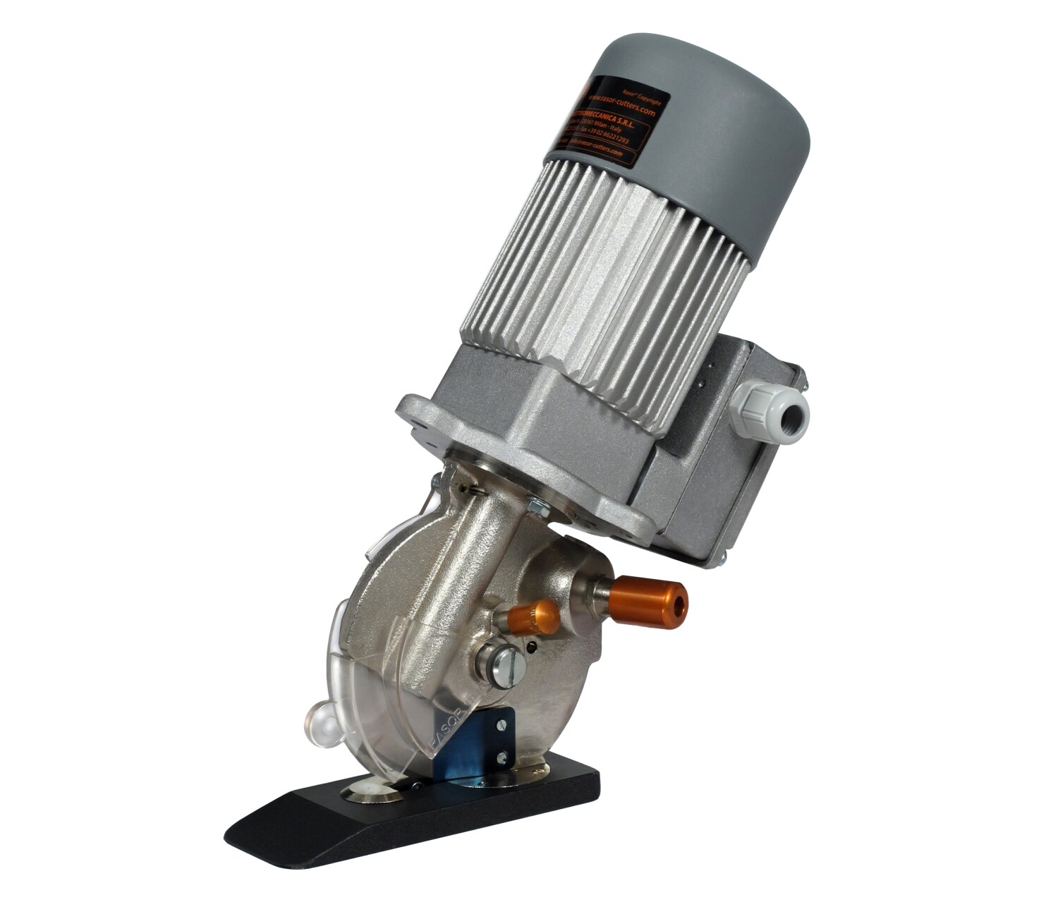Unidade de corte eléctrica trifásica 75W com lâmina Ø100mm com 6 lados (esquerda), 550 rpm, altura de corte até 35mm.