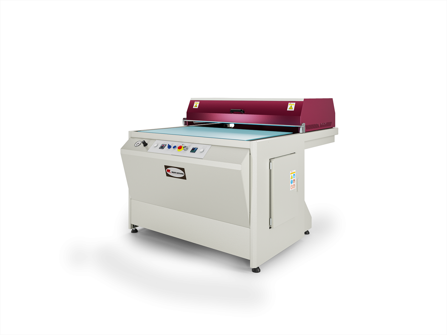 Prensa pneumática simples para impressão por transferência e laminação.