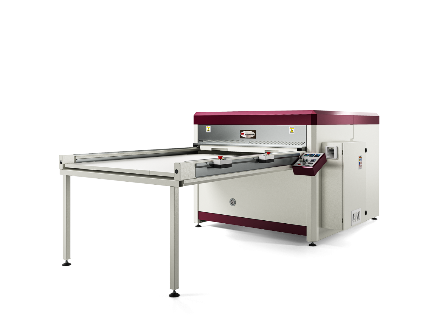 Prensa dupla, hidráulica, para impressão por transferência e laminação.