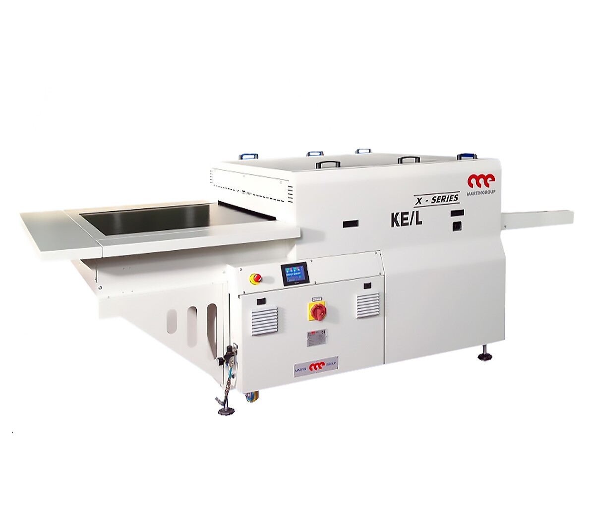 Máquina de termocolagem contínua com pressão manual ou pneumática.
